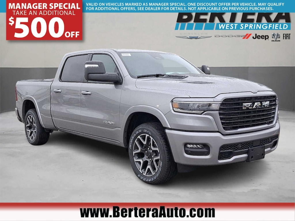 SPORT APPEARANCE PACKAGE Tires: 275/55R20 OWL All Season, Accent Color Premium Power Mirrors, Sport Performance Hood, Black Interior Accents, Body Color Front Bumper, Body Color Rear Bumper w/Step Pads, Bridgestone Brand Tires, Grille Surround 3 Body Color Tex 2 Black, Black Painted Exterior Mirrors Caps, BED UTILITY GROUP MOPAR Spray In Bedliner, MOPAR 4 Adjustable Cargo Tie-Down Hooks, Exterior 115V AC Outlet, E-LOCKER REAR AXLE, LARAMIE LEVEL 1 EQUIPMENT GROUP Remote Tailgate Release, Rain Sensitive Windshield Wipers, MOPAR FRONT & REAR RUBBER FLOOR MATS, TRANSMISSION: 8-SPEED AUTOMATIC (8HP75) (STD), ENGINE: 3.0L I6 HURRICANE SO TWIN TURBO ESS (STD), BLACK, LEATHER TRIMMED BUCKET SEATS Bucket Seats, Rear 60/40 Folding Split Recline Seat, Heated Second Row Seats, Power Adjust 8-Way Driver Seat, Full Length Upgraded Floor Console.