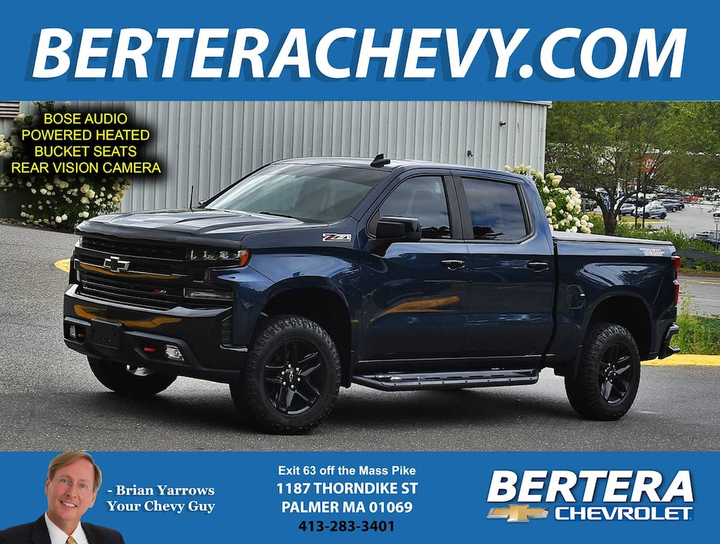 **CLEAN CRAFAX** 5.3 L, V8, EcoTec, 4x4 Crew Cab LT Trail Boss, Convenience Package with Powered Heated Bucket Seats ($1,805), Convenience Package II ($1,420), Off Road Assist Steps ($965), Bed Protection Package ($685), Trailer Brake Controller ($275), Dark Essentials Package ($275), Bose Premium Sound System, Chevrolet Infotainment System with 8" diagonal color touch-screen with USB ports, SiriusXM with 360L, HD radio, HD Rear Vision Camera, Heated Steering Wheel and Manual Tilt-Telescoping Steering Column, Mirrors: Outside Heated Power Adjustable, LED Headlamps/Tail Lamps/Fog Lamps, Keyless Open And Start, Stability Control System, Proactive Roll Avoidance, Traction Control, Electronic Trailer Sway Control, Hill Start Assist, Suspension Package, Z71 Off-Road Equipment With 2" Lift, Off-Road Suspension With 2" Lift And Monotube Shocks, Hill Descent Control, Skid Plates, High-Capacity Air Filter And Z71 Hard Badge, Universal Home Remote, Rear Sliding Power Window, 120-Volt Power Outlet, 120-Volt Bed-Mounted Power Outlet, Trailering Package: Trailer Hitch, 7-Pin And 4-Pin Connectors And Hitch Guidance, Electronically Controlled With Overdrive And Tow/Haul Mode, Cruise Grade Braking And Powertrain Grade Braking, Heavy-Duty Locking Rear Differential, Wheels: 18" X 8.5" High Gloss Black Painted Aluminum, Onstar, Tailgate: Gate Function Manual With Ez Lift, Includes Power Lock And Release, Meticulously Maintained New Car Trade-In, Fully Serviced and Warrantied! Loaded with Power Options and So Much More.