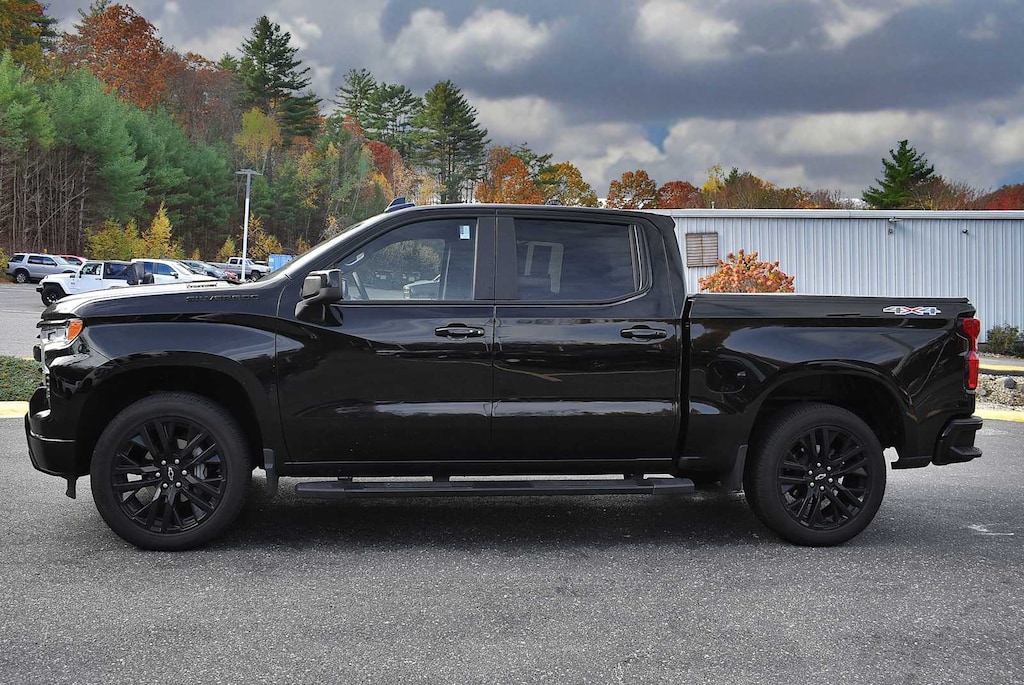 LPO, 22" (55.9 CM) HIGH GLOSS BLACK WHEELS LPO wheels will come with 4 steel 22" wheels from the factory with alignment specs set to 22" LPO wheel selected. Includes wheel locks. (dealer-installed) (Beginning with production starting on August 1, 2023, certain vehicles will no longer come with Black wheel lugs and locks and will instead come with bright finish lugs and locks. LPO, BLACK TUBULAR ASSIST STEPS, 6" RECTANGULAR (dealer-installed), LPO, ALL-WEATHER FLOOR LINERS 1st and 2nd rows on Crew Cab and Double Cab, (includes Chevrolet Bowtie logo), AUDIO SYSTEM, CHEVROLET INFOTAINMENT 3 PREMIUM SYSTEM with Google built-in compatibility (select service plan required, terms and limitations apply) including navigation capability, 13.4" diagonal HD color touchscreen, includes multi-touch display, AM/FM stereo, Bluetooth® streaming audio for music and most phones; featuring Wireless Apple CarPlay® and Wireless Android Auto® capability for compatible phones, advanced voice recognition, in-vehicle apps, personalized profiles for infotainment and vehicle settings (STD), ENGINE, TURBOMAX (310 hp [231 kW] @ 5600 rpm, 430 lb-ft of torque [583 Nm] @ 3000 rpm) (STD), TRANSMISSION, 8-SPEED AUTOMATIC, ELECTRONICALLY CONTROLLED with overdrive and tow/haul mode. Includes Cruise Grade Braking and Powertrain Grade Braking (STD). Chevrolet RST with Black exterior and Jet Black interior features a 4 Cylinder Engine with 310 HP at 5600 RPM*.