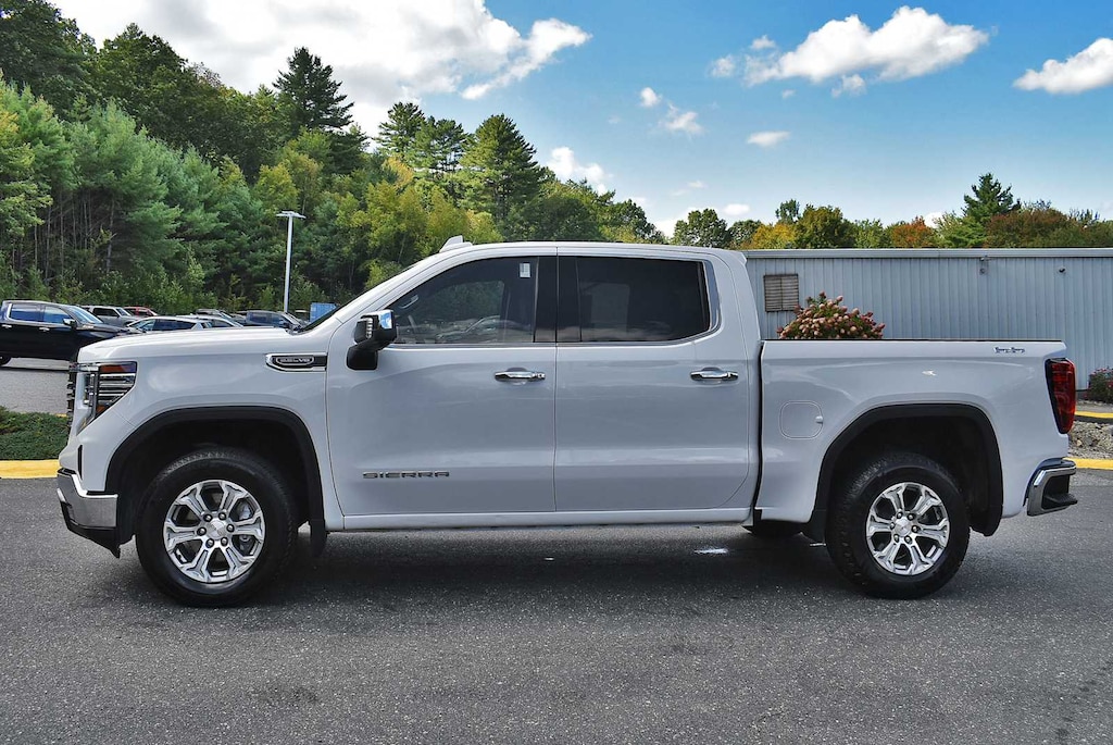 AUDIO SYSTEM, 13.4" DIAGONAL PREMIUM GMC INFOTAINMENT SYSTEM WITH GOOGLE BUILT IN APPS SUCH AS NAVIGATION AND VOICE ASSISTANCE, INCLUDES COLOR TOUCH-SCREEN, MULTI-TOUCH DISPLAY, AM/FM STEREO Bluetooth® streaming audio for music and most phones; featuring wireless Android Auto® and Apple CarPlay® capability for compatible phones (STD), ENGINE, 5.3L ECOTEC3 V8 (355 hp [265 kW] @ 5600 rpm, 383 lb-ft of torque [518 Nm] @ 4100 rpm); featuring Dynamic Fuel Management (STD), TRANSMISSION, 10-SPEED AUTOMATIC, (COLUMN SHIFTER) ELECTRONICALLY CONTROLLED with overdrive and tow/haul mode. Includes Cruise Grade Braking and Powertrain Grade Braking (STD). GMC SLT with Summit White exterior and Jet Black interior features a 8 Cylinder Engine with 355 HP at 5600 RPM*.