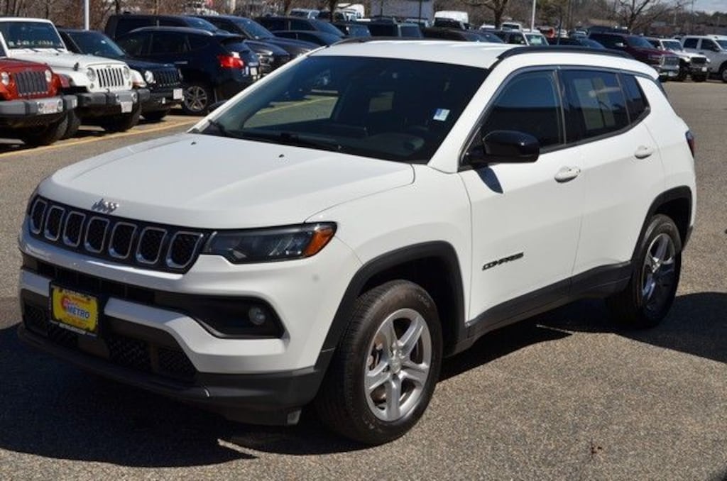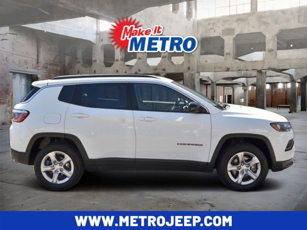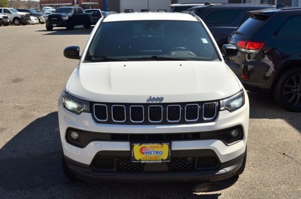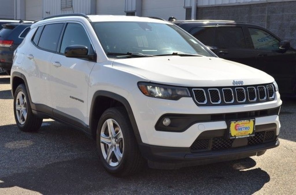 Bright White Clearcoat 2024 Jeep Compass Latitude 4WD 8-Speed Automatic 2.0L I4 DOHC CLEAN CARFAX, ONE OWNER, REMAINDER OF FACTORY WARRANTY, RECENT METRO CJD TRADE IN, Electronic Stability Control, Fully automatic headlights, Heated door mirrors, Quick Order Package 29J Latitude, Radio: Uconnect 5 w/10.1" Display, Steering wheel mounted audio controls.