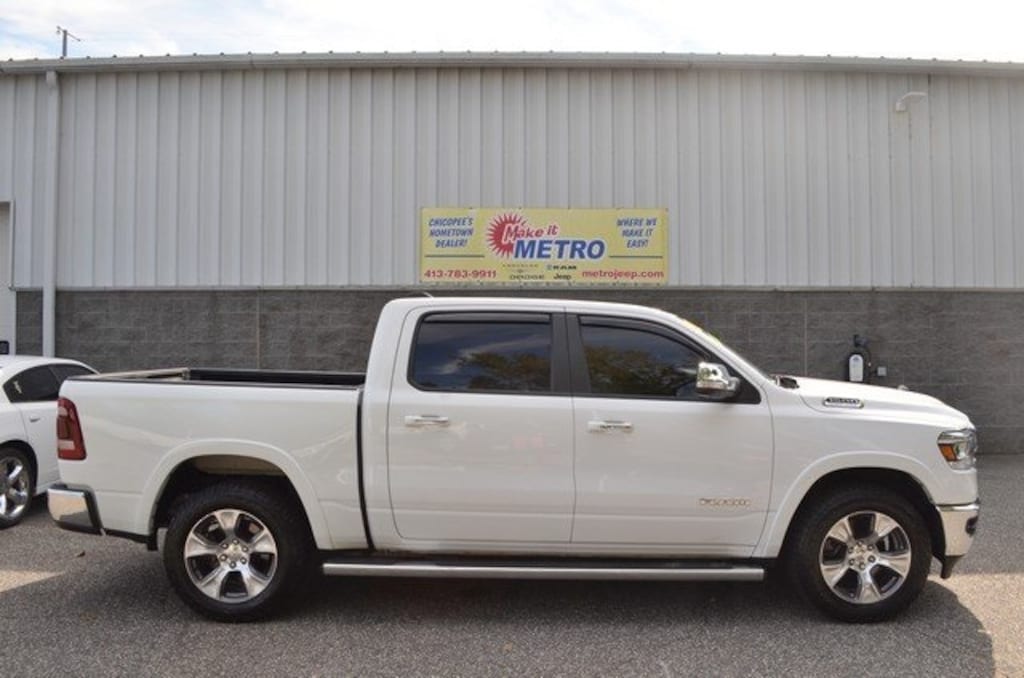 Bright White Clearcoat 2021 Ram 1500 Laramie Crew Cab Hemi,Nav,Trailer Tow 4WD 8-Speed Automatic HEMI 5.7L V8 Multi Displacement VVT ONE OWNER, REMAINDER OF FACTORY WARRANTY, RECENT METRO CJD TRADE IN, 1-Yr SiriusXM Guardian Trial, 12" Touchscreen Display, 4G LTE Wi-Fi Hot Spot, 5-Year SiriusXM Traffic Service, 5-Year SiriusXM Travel Link Service, Apple CarPlay, Auto High Beam Headlamp Control, Disassociated Touchscreen Display, Foam Bottle Insert (Door Trim Panel), For Details, Visit DriveUconnect.com, For More Info, Call 800-643-2112, Google Android Auto, GPS Antenna Input, GPS Navigation, HD Radio, Integrated Center Stack Radio, Integrated Voice Command w/Bluetooth, Laramie Level A Equipment Group, ParkSense Front/Rear Park Assist w/Stop, Quick Order Package 27H Laramie, Radio: Uconnect 12 w/Navigation, Rain Sensitive Windshield Wipers, Rear 60/40 Folding Split Recline Seat, Remote Tailgate Release, SiriusXM Radio Service, SiriusXM Satellite Radio, SiriusXM Traffic Plus, SiriusXM Travel Link, SiriusXM w/360L, Tailgate Ajar Warning Lamp, Trailer Brake Control, Trailer Light Check, Trailer Reverse Steering Control, Trailer Tire Pressure Monitoring System, Trailer Tow Group (DISC), USB Host Flip.