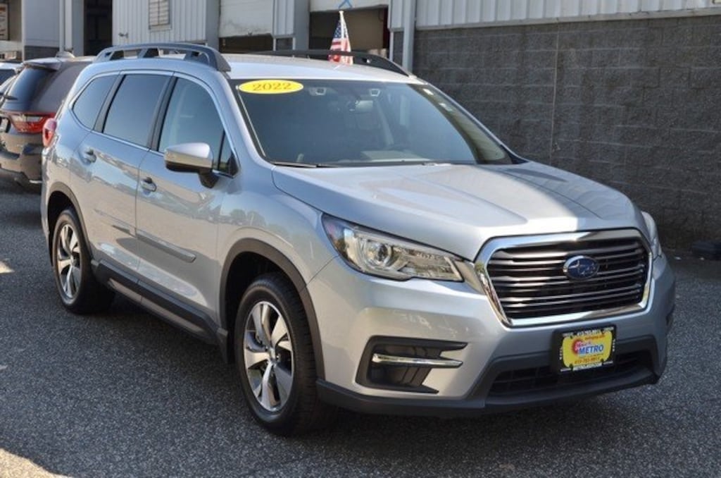 Ice Silver 2022 Subaru Ascent Premium 8-Passenger,Convenience Package AWD Lineartronic CVT 2.4L 4-Cylinder DOHC 16V Auto-Dimming Rear View Compass Mirror w/HomeLink, Convenience Package, Keyless Access w/Push-Button Start, Power Rear Gate w/Automatic Close & Height Memory, Reverse Automatic Braking (RAB) System.