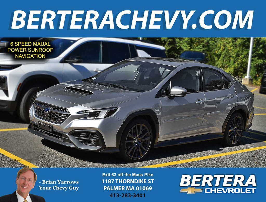 **CLEAN CARFAX** 2.4 L, 4 Cylinder, Turbo, 6 Speed Manual, Limited, Power Sunroof, Powered Performance Design Heated Front Bucket Seats, Ultrasuede & Leather Trimmed Seats W/Red Stitching: Carbon Black Leather Bolsters, 60-40 Folding Bench Front Facing Fold Forward Seatback Rear Seat, Radio: Navigation System, Subaru Starlink 11.6" Multimedia Plus Sys: AM/FM Stereo Hd Radio, Multi-Touch Gesture High Resolution Display Screen, Voice Activated Controls, harman/kardon Audio, Sport Leather Steering Wheel, Manual Tilt/Telescoping Steering Column, Voice Activated Dual Zone Front Automatic Air Conditioning, Perimeter/Approach Lights, Led Brakelights, Front Fog Lamps, Lip Spoiler, Remote Keyless Entry W/Integrated Key Transmitter, 4-Wheel Disc Brakes W/4-Wheel Abs, Front And Rear Vented Discs, Blind Spot Detection , Brake Assist And Hill Hold Control, Vehicle Dynamics Control Electronic Stability Control, Abs And Driveline Traction Control, Rear Cross Traffic Alert , Sport Tuned Suspension, Wheels: 18" X 8.5" Dark Gray Finish Alum Alloy, Cruise Control W/Steering Wheel Controls, Perimeter Alarm, Powered Windows and Door Locks, Meticulously Maintained New Car Trade-In, Fully Serviced and Warrantied! Loaded with Power Options and So Much More. ======KEY FEATURES INCLUDE: Navigation, Sunroof, Heated Driver Seat, Back-Up Camera, Premium Sound System, Satellite Radio, iPod/MP3 Input, Onboard Communications System, Keyless Start, Dual Zone A/C, Apple CarPlay , Smart Device Integration, Cross-Traffic Alert, Blind Spot Monitor, Heated Seats Rear Spoiler, MP3 Player, Keyless Entry, Remote Trunk Release, Child Safety Locks. Subaru Limited with Ice Silver Metallic exterior and Black Alcantera interior features a 4 Cylinder Engine with 271 HP at 5600 RPM*. ======WHY BERTERA CHEVROLET?: From Acuras to Volvos and every make in between, be amazed by what you can afford! At Bertera Chevy you should expect the cleanest, best equipped vehicles from Acura to Volvo at the best values, everyday. It's not just dollars and cents. its common sense! Not all used vehicles are the same. When you look at a pre-owned vehicle at Bertera Chevrolet, we want you to have higher expectations. We employ a team of full time buyers that search the entire country for the best value vehicles, not just the lowest priced vehicles. We want you to expect a better condition. Expect more equipment. Expect more pre-delivery servicing. Expect a clean CarFax report. Expect the Free Tires for Life Program. Expect more. For 12 years and running, Bertera Chevrolet has been fulfilling and exceeding your expectations. We look forward to serving you. Horsepower calculations based on trim engine configuration. Please confirm the accuracy of the included equipment by calling us prior to purchase.